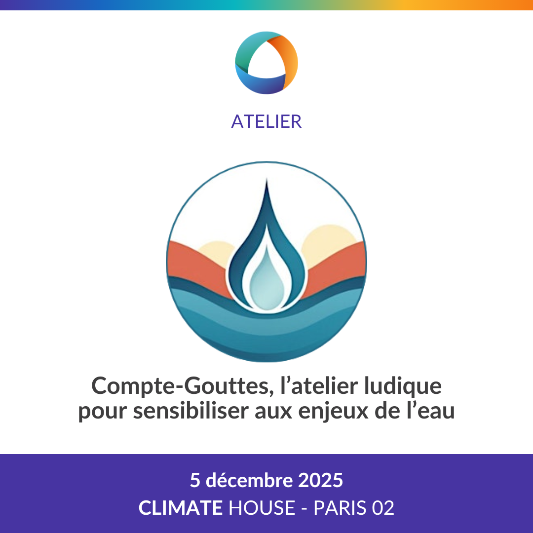 L'Atelier Compte-Gouttes offre aux participants la possibilité de comprendre le fonctionnement de l'eau en France et comment celui-ci est mis en péril par le réchauffement climatique. Il sera animé par Matthieu Annequin ingénieur co-fondateur du cabinet de conseil en résilience climatique Hydros.