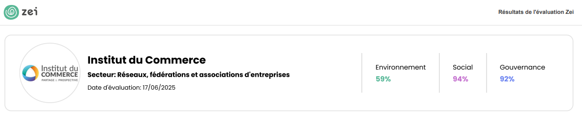 L'Institut du Commerce a choisi en novembre 2022 l'outil ZEI pour piloter les progrès et points d'amélioration de l'association de son impact ESG (Environnement Social Gouvernance). Nous publions de façon transparente notre profil en libre d'accès sur la Plateforme ZEI.