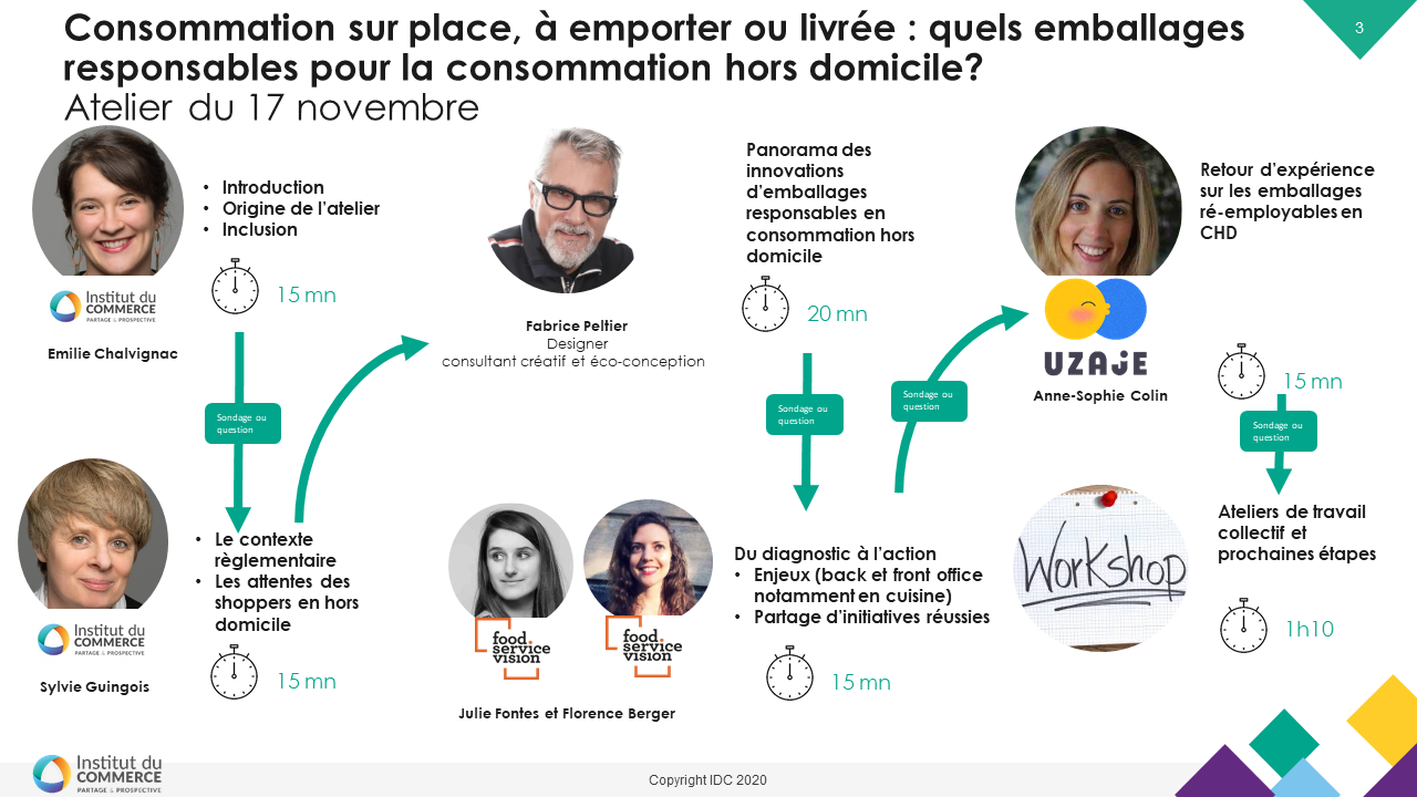 A la croisée entre les travaux menés par les adhérents de l'Institut du Commerce sur l'économie circulaire (parcours d'achat éco-responsable, logistique retour au service de l'économie circulaire...) et des travaux menés au sein de groupe de travail orientés "commerce" (pilotage du business de la consommation hors domicile, promimité, e-commerce....), l'atelier proposé aux adhérents aura pour objectifs de :